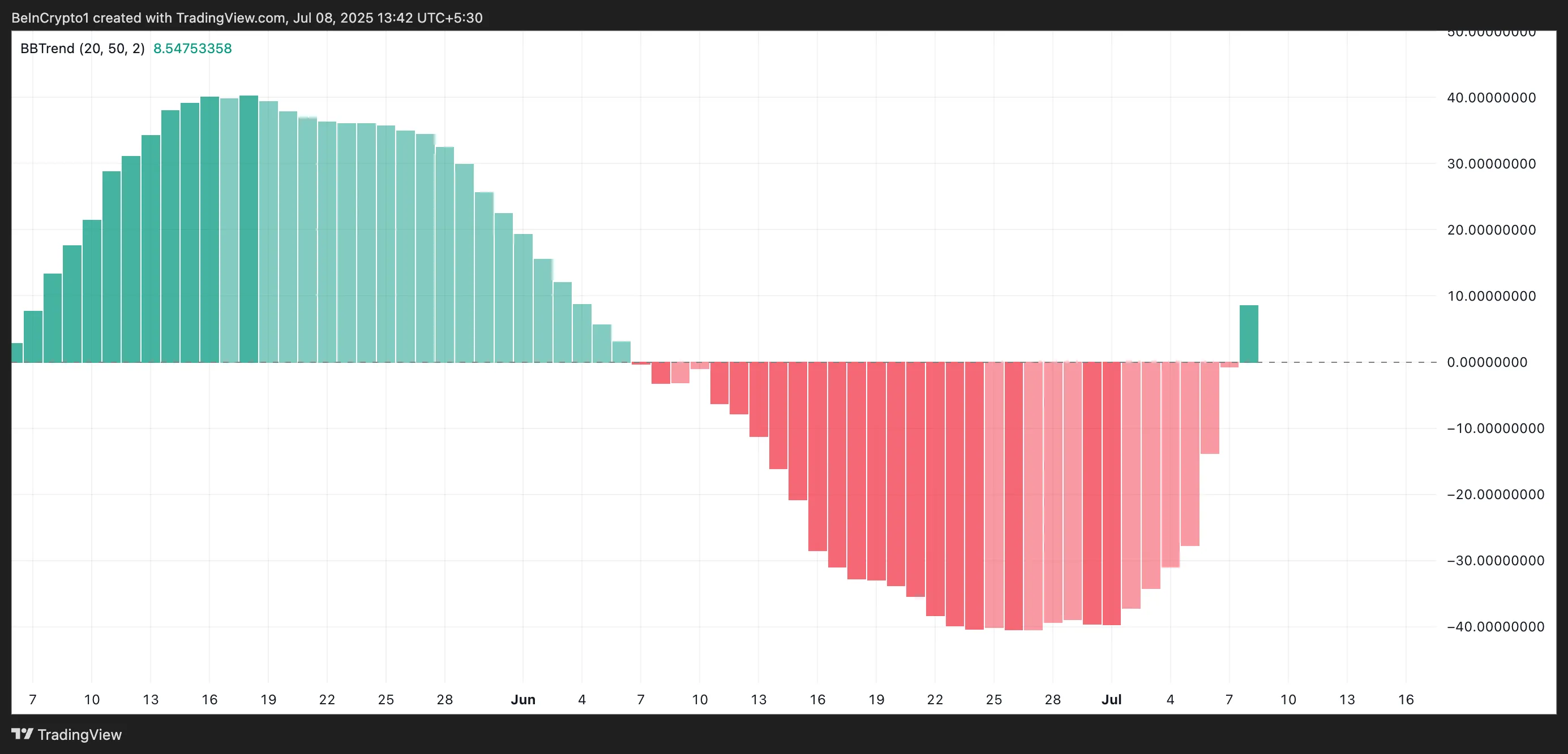 值得注意的是,BONK的BBTrend指标30天来首次转正,为持续反弹提供了技术支撑。该指标反转表明,在经历长期下跌后,多头动能可能正在重新积聚。