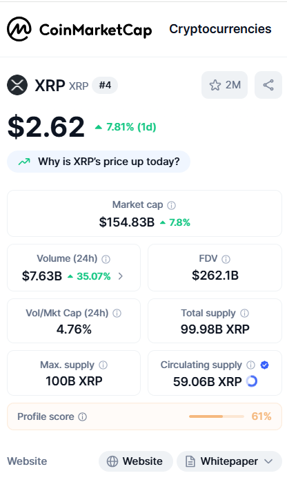 瑞波币(XRP)触及2.60美元的八周高点(上次达到该价位是在2025年5月14日)。比特币同日创下历史新高,超越前一日纪录,投资者正大举涌入风险资产并平仓空头头寸。