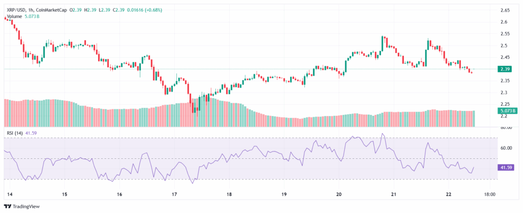尽管今日小幅下跌,XRP价格仍坚守2.4美元短期支撑位