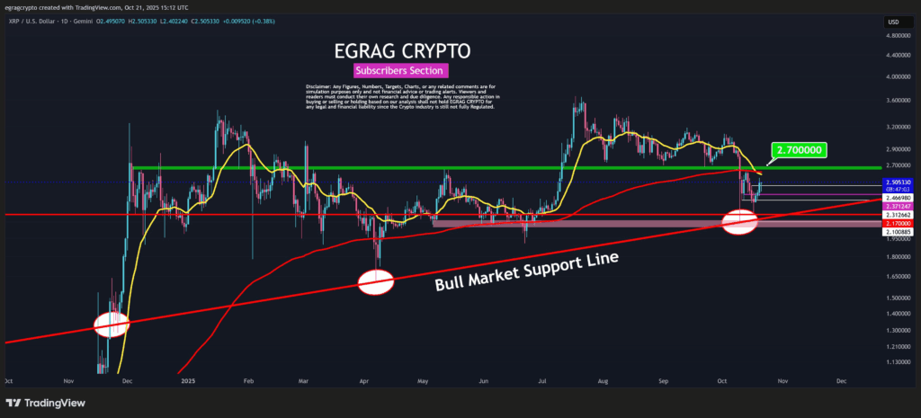 虽然鲸鱼的入场短暂推高了XRP价格,但分析师仍对其长期走势保持乐观。EGRAG CRYPTO指出,若瑞波币能将2.65-2.7美元阻力区转化为支撑位,可能引发大幅上涨。