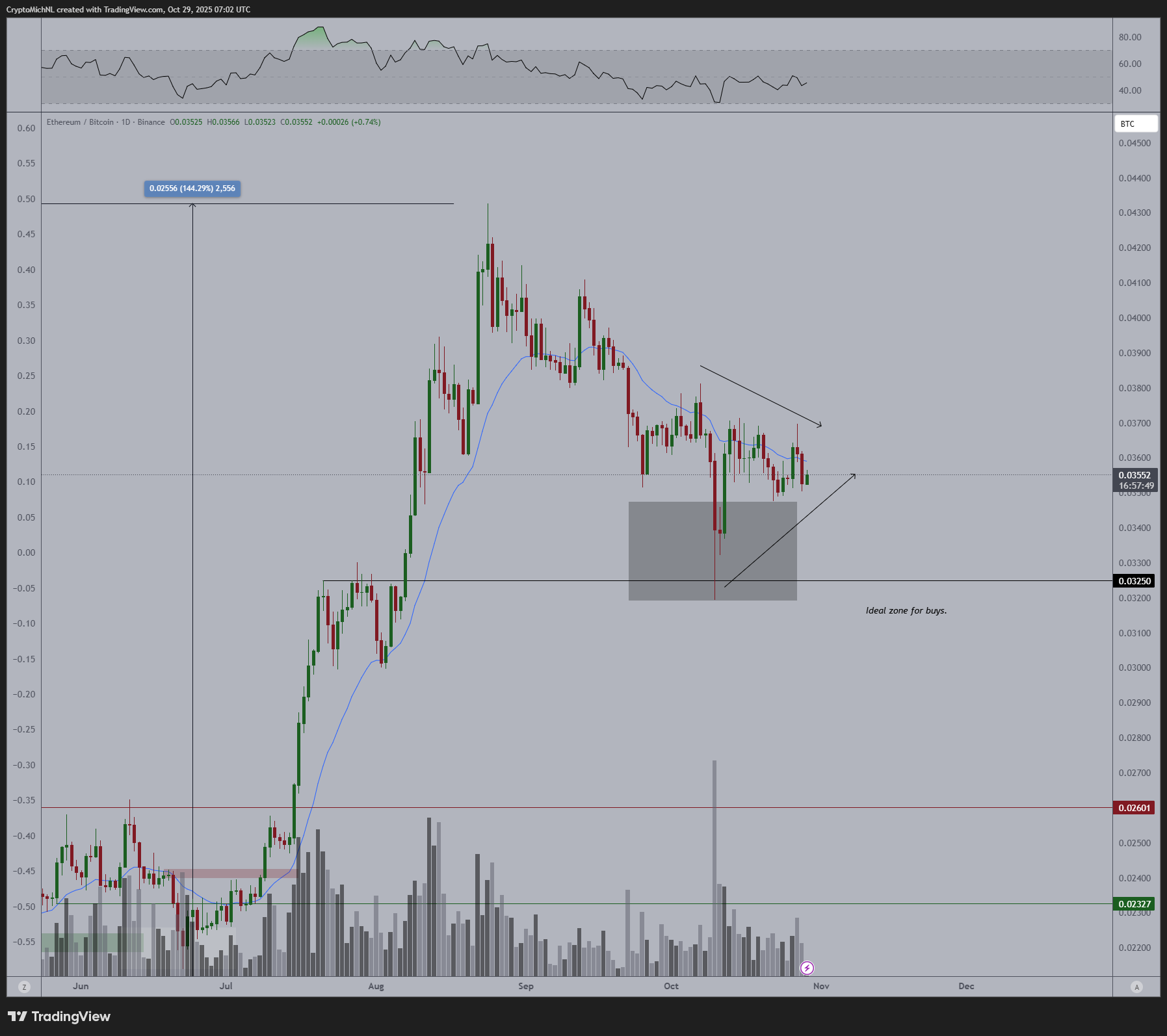 "持续看到价格收敛与动量蓄势。一切取决于商业周期与FOMC决策。若风险资产进入上升周期,ETH已准备好启动新一轮上涨攻势,突破5000美元关口。"