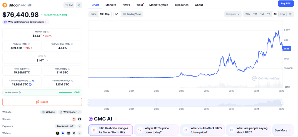 截至2026年2月2日,比特币交易于75431美元附近。分析师指出75000-75500美元为当前结构底部,若跌破则将下探74000-74400美元流动性区间,随后考验70000美元心理关口。