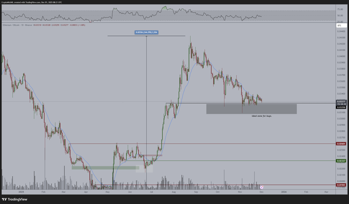 他明确表示"非常期待2.5万-2.6万美元支撑能守住",并将其视为潜在见底信号。该区间在技术图表中被标注为吸筹区域,但迄今尚未显现强劲买盘。若ETH下破2,500美元,短期可能面临更深回调,该价位的强弱表现将决定后续走势。
