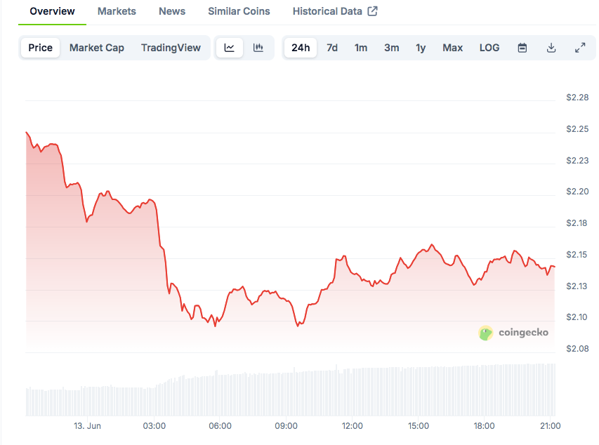 尽管创新显著,XRP价格仍呈跌势。据CoinGecko数据显示,该代币当前交易价格为2.14美元,日内下跌5.20%,周跌幅达1.81%。