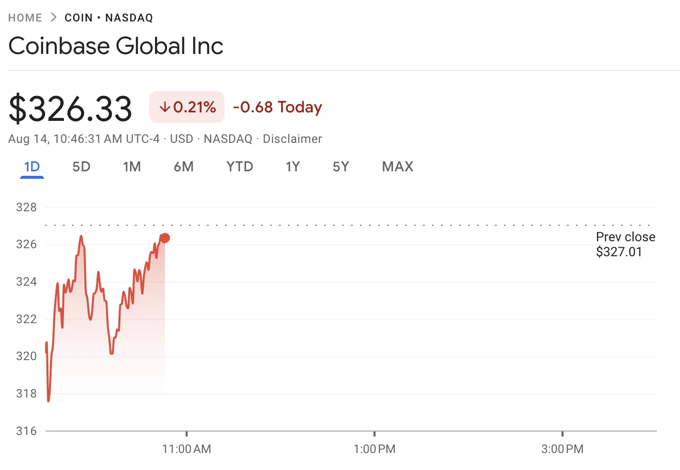 五月达成协议后,Coinbase股价单月涨幅达37%。今日市场再现类似乐观情绪:
