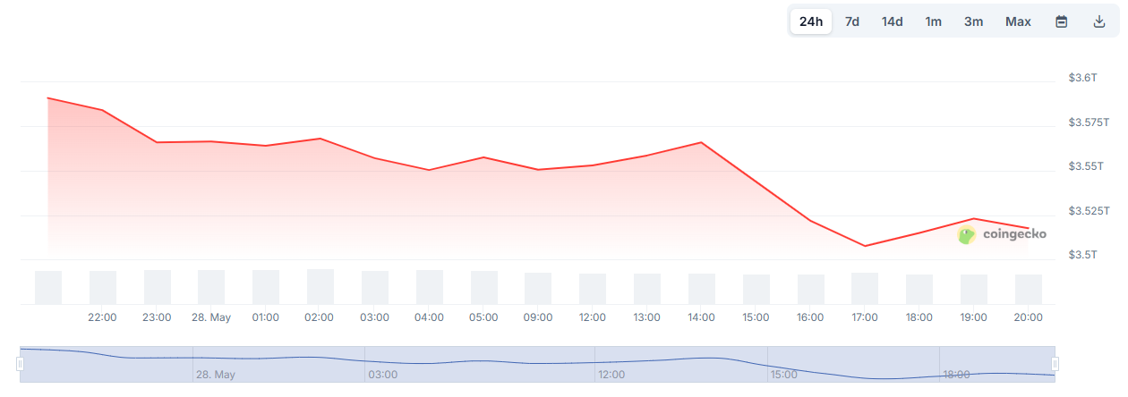 加密货币市场在美国联邦储备委员会5月政策会议纪要公布后出现短暂回调。周二晚间比特币和以太坊下跌约2%,而瑞波币跌幅达4%。