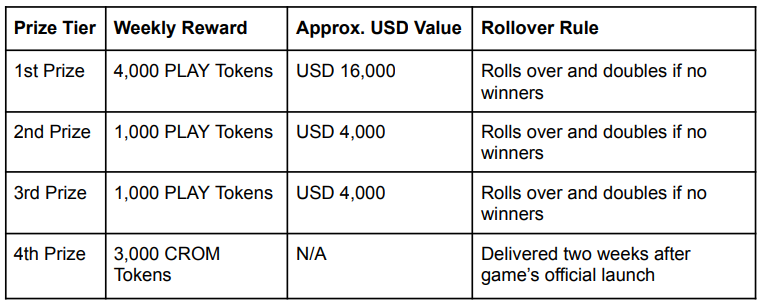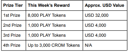 ● 总奖池:6,000 PLAY代币 + 3,000 CROM代币
