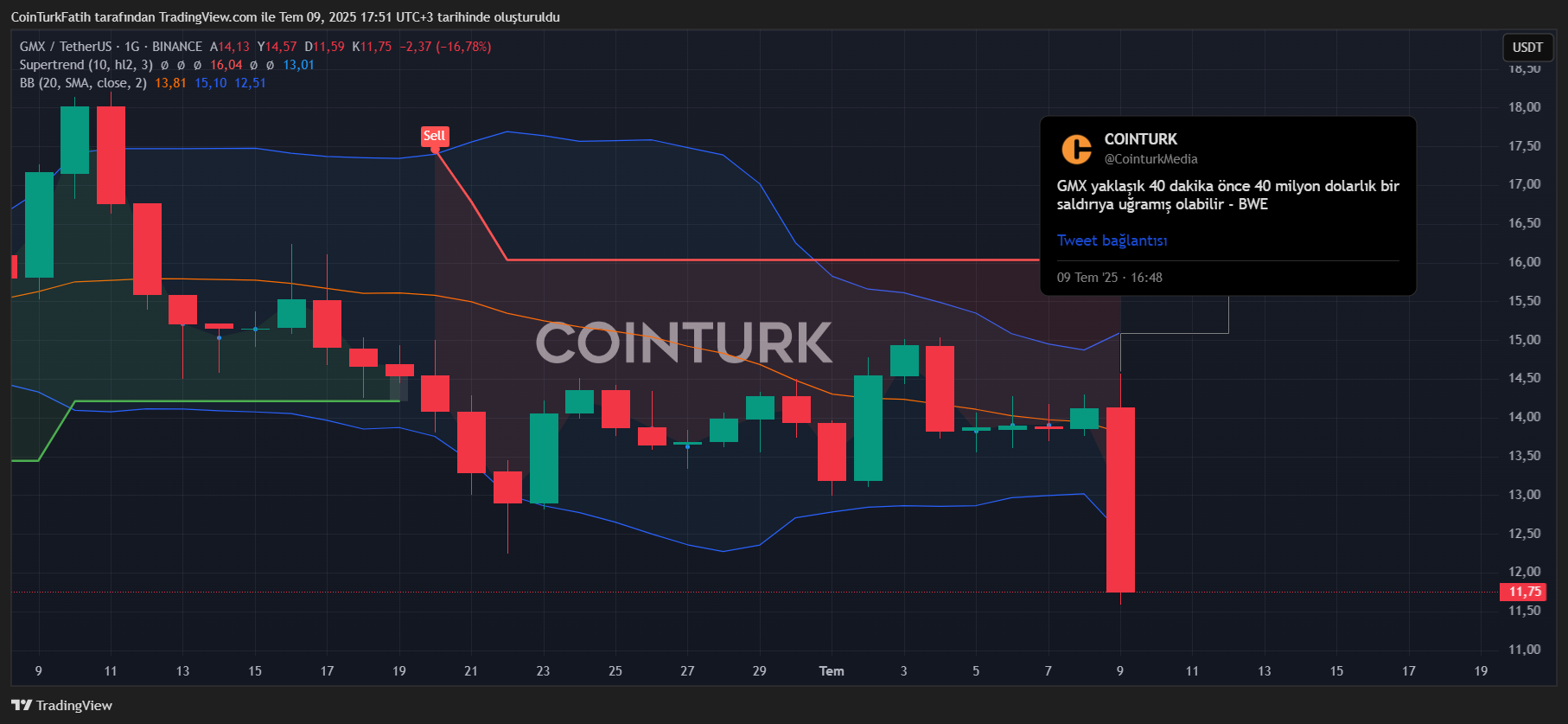 虽然这对空头而言可能是机会,但用户已报告4000万美元损失。团队核实攻击后发布警告。随着GMX代币跌至11.5美元,单日跌幅接近25%。目前尚未公布补偿方案,但若实施可能引发空头仓位快速清算。