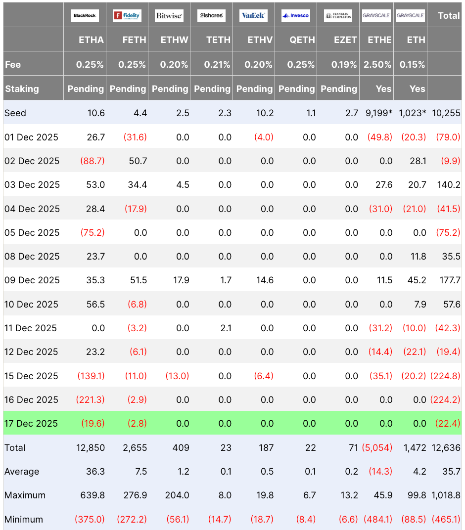 投资者撤离以太坊ETF