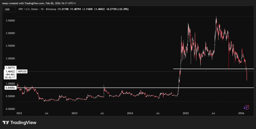 过去数日,加密货币市场经历大幅下跌,压力几乎蔓延至所有主要资产。比特币快速走低,XRP等备受关注的币种亦同步下行。本周初XRP尚徘徊于1.6美元附近,随着整体市场走弱及风险资产信心消退,其价格已滑落至1美元区间。