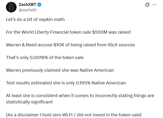 针对加密货币的政治打击是否结束?显然没有。参议员伊丽莎白·沃伦和杰克·里德已要求司法部与财政部联合调查特朗普旗下加密公司World Liberty Financial。