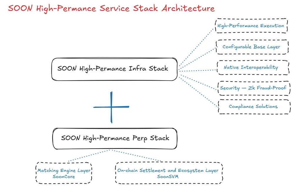 基于这一认知,SOON确立了明确目标:让高性能不再是大机构的专属能力。团队开发了高吞吐、低延迟的SVM执行栈,目标实现50毫秒级出块时间和30,000 TPS吞吐量。该模块化架构以服务形式输出,支持团队快速部署L1、L2或高性能交易所。为验证实际价值,SOON推出链上永续合约平台100XSOON,其撮合延迟低于5毫秒,用户体验媲美中心化交易所。