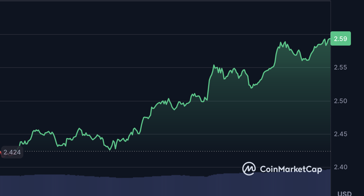 受BlackRock可能推出XRP ETF的传闻影响,加上瑞波与美国证券交易委员会(SEC)长期法律纠纷取得进展,XRP在过去24小时内上涨6.57%,触及2.58美元价位。此次大幅上涨还伴随着技术层面上对2.50美元阻力位的明确突破。