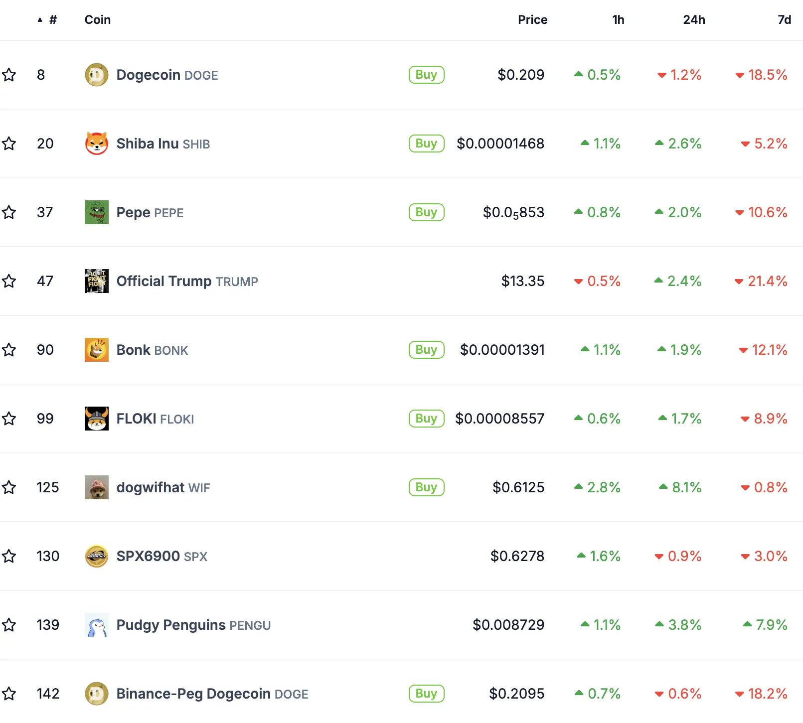 形成对比。值得注意的是,前10大迷因币中有7个在过去24小时内录得涨幅。