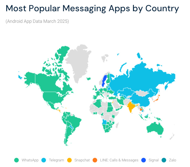 Telegram占据通讯领域的独特地位——它虽非任何国家的首选通讯应用,却在多地区作为次常用软件存在。这种"第二平台"的跨境中立性使其难以被替代。