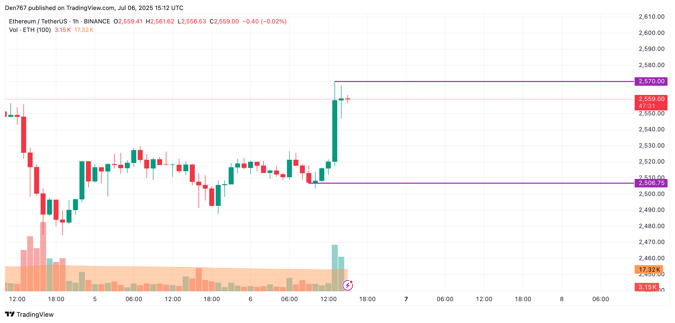 小时线图表显示,这个主流山寨币价格正逼近2,570美元局部阻力位。若多头能保持攻势,预计将突破该水平,并很快测试2,600美元区间。