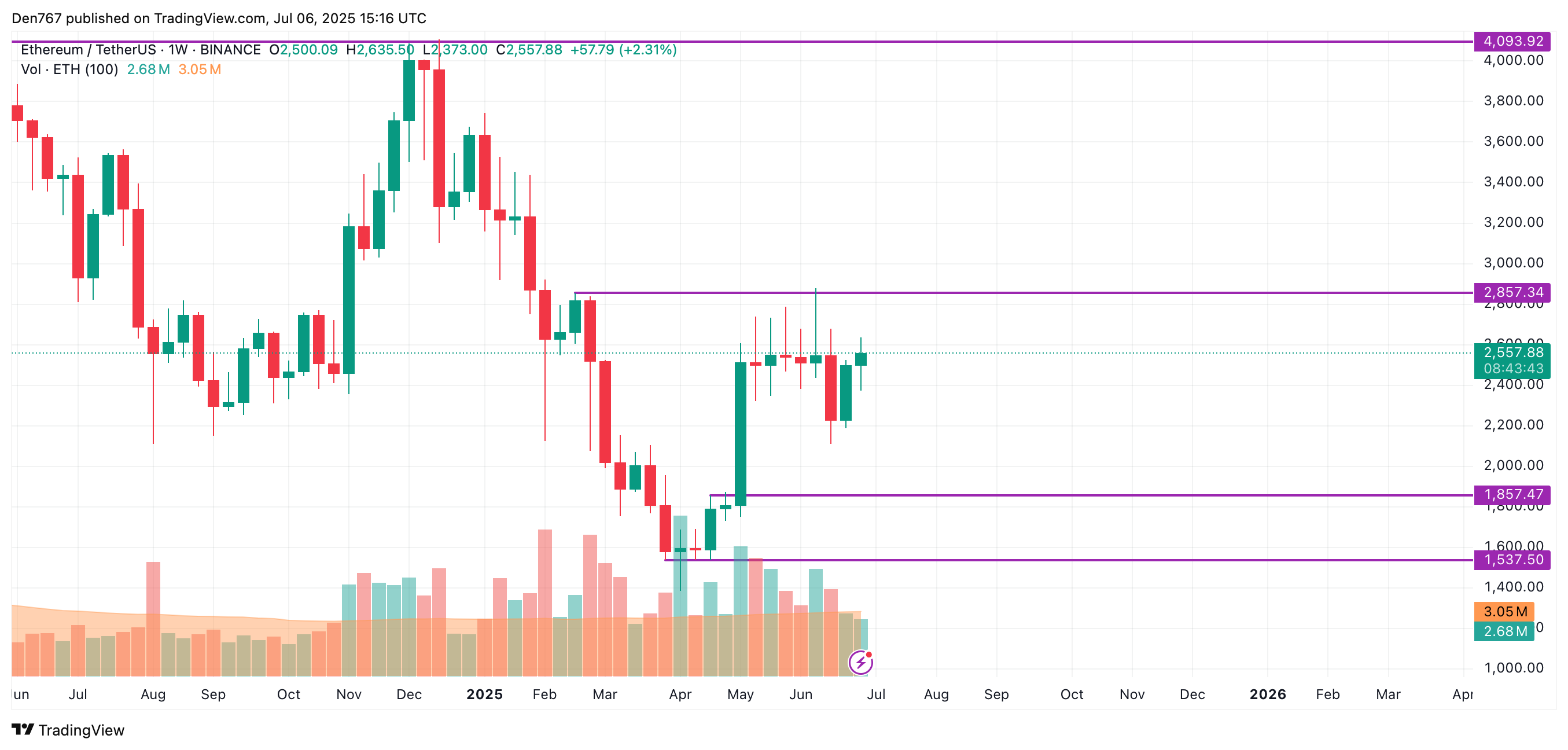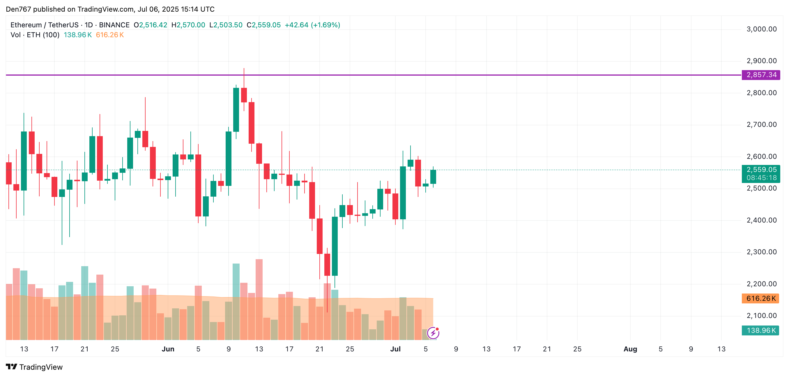 截至发稿时,以太坊报2,557美元。