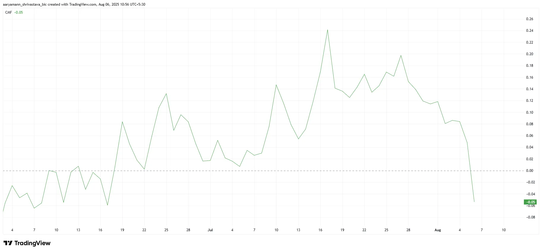 Chaikin资金流量指标(CMF)近期急剧下滑,显示投资者信心正在减退。这一现象表明资金正持续流出XRP市场,反映出投资者对该代币价格走势的怀疑态度持续加深。CMF指标的陡峭下跌值得警惕,暗示若市场情绪未出现转变,资金外流趋势可能延续。