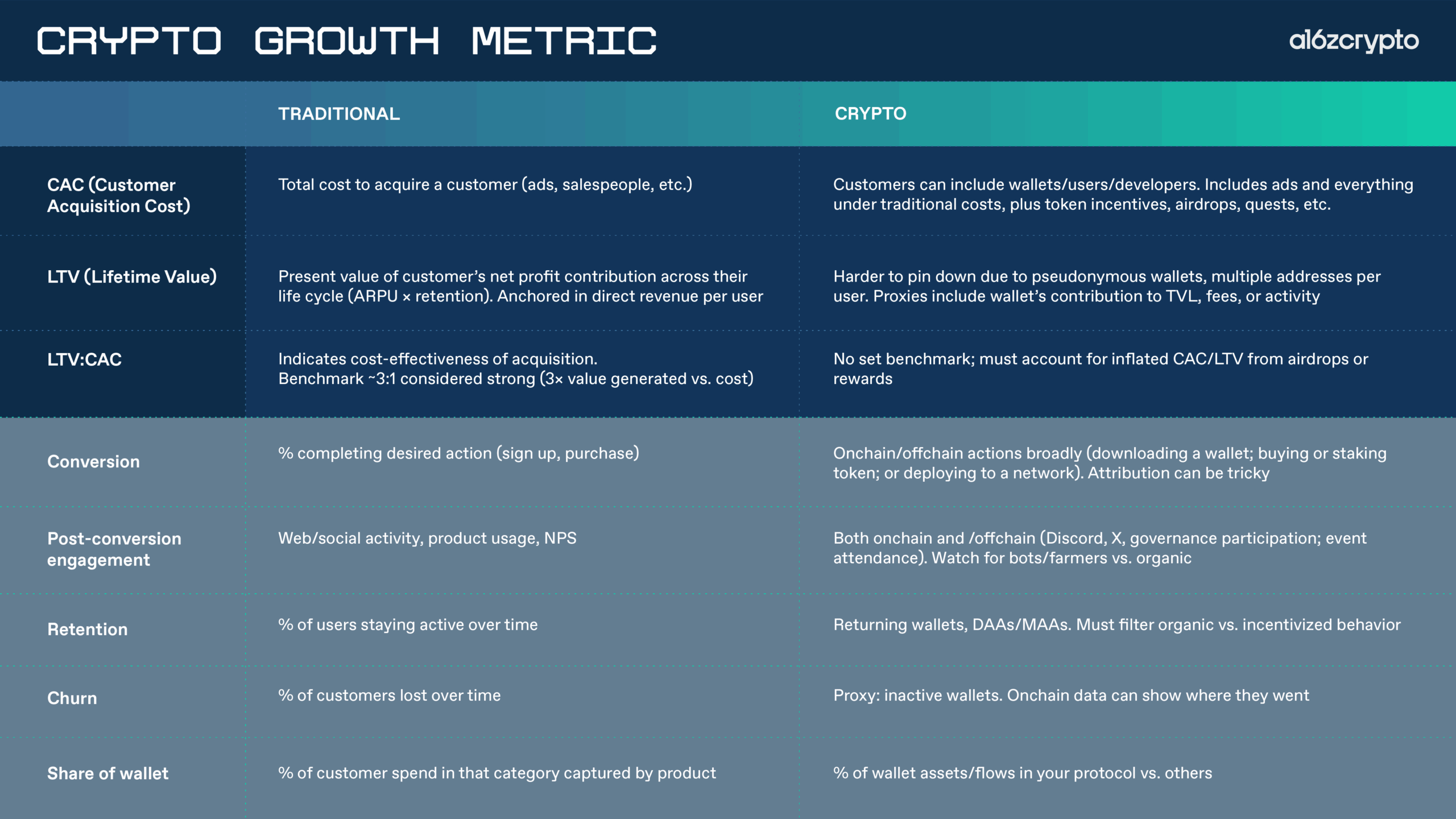 衡量加密领域的增长不是简单复制Web2方案——而在于调整有效方法,摒弃无效策略,围绕区块链独有能力构建新框架。鉴于从L1到游戏等不同产品特性,每个团队的数据看板都会呈现不同面貌。