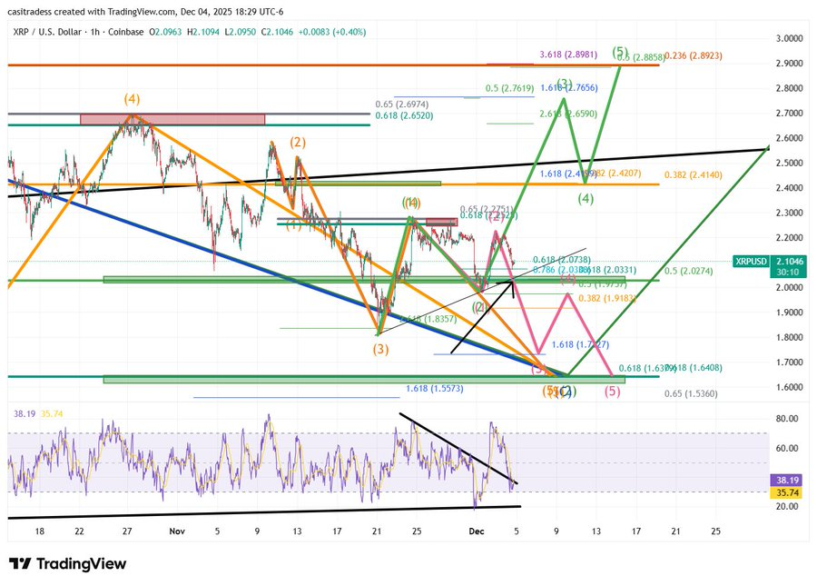 分析师Casi Trades指出,XRP正在逼近2.04美元的关键支撑位。虽然近期小幅反弹显示一定韧性,但该水位将决定价格能否止跌回升。若坚守2.04美元支撑,买盘或推动价格上行;一旦失守,则可能下探1.64美元。