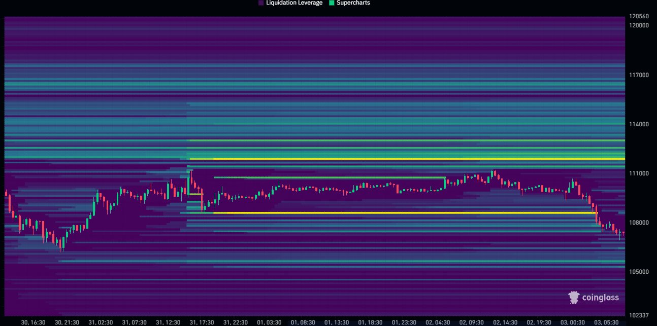 交易员Daan Crypto Trades则关注订单簿流动性,发现11.2万美元附近存在大型流动性集群,而10.5万-10.6万美元是关键支撑区域。这些区域可能引发显著反弹或进一步下跌:"价格虽跌破108.5万美元下界,但11.2万附近存在显著流动性集群。需重点关注10.5-10.6万和11.7万美元位置。"