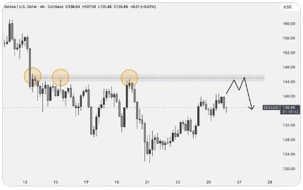 X平台(前身为Twitter)的顶级分析师Mr. APE看法复杂。考虑到之前的拒绝情况,他们强调144美元至146美元区域是一个强劲的阻力位。在当前Solana价格下,SOL是否属于最佳替代币购买选择之列?这位加密专家认为,该第一层网络代币正处于十字路口:要么突破并重新上探157美元,要么下跌并交易于更低水平。