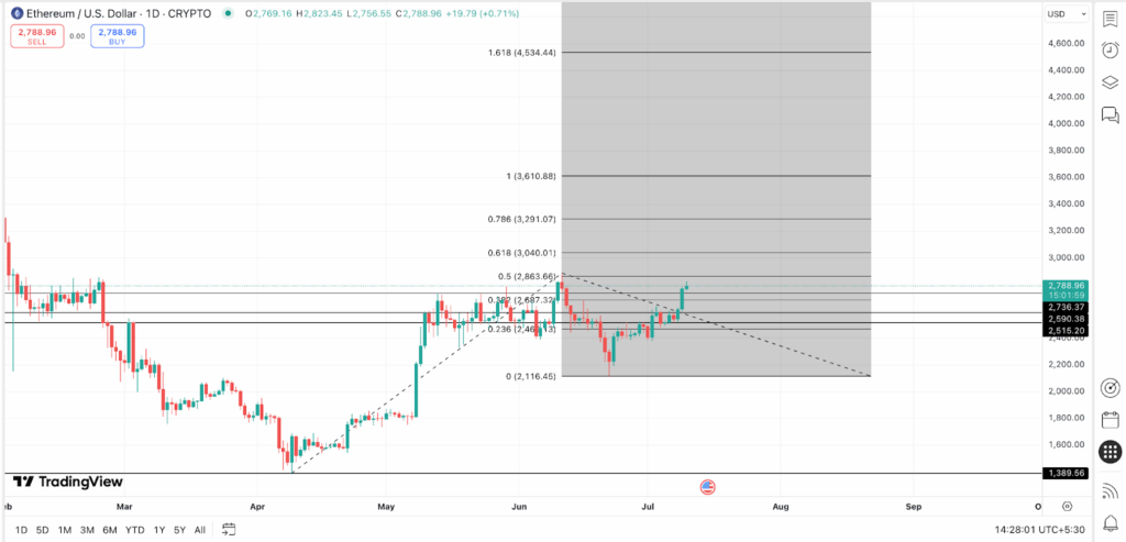突破这些关口后,ETH或将开启向4534美元(从1382美元摆动低点到2876美元高点的1.618延伸位)的完整价格探索。