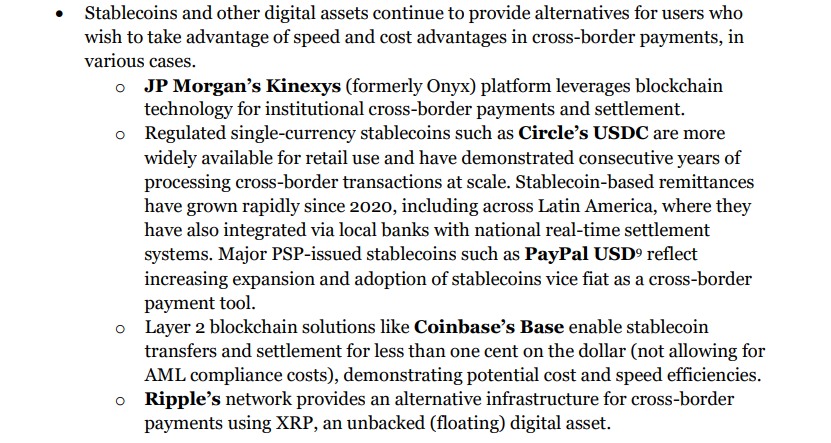 2. Circle的USDC作为受监管的稳定币,在零售领域得到广泛采用,并在处理国际交易方面表现出持续成功。报告还指出,在拉丁美洲等地区,基于稳定币的汇款业务快速增长。