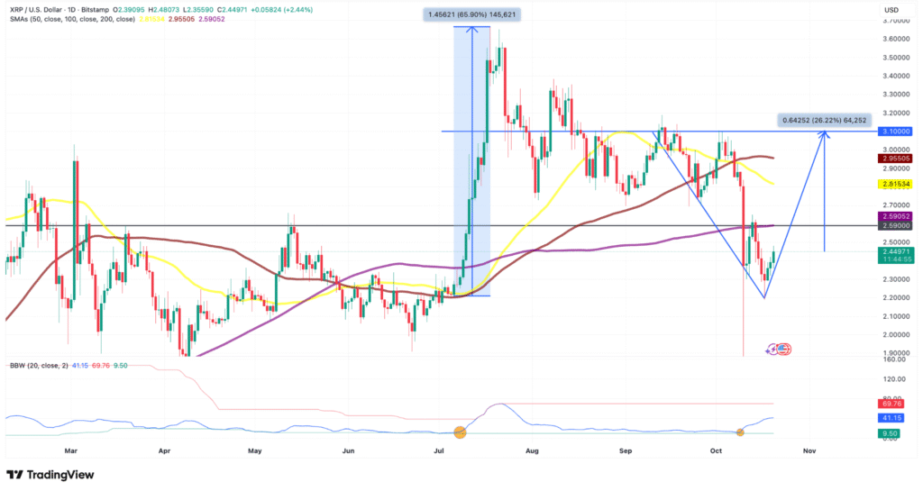XRP突破2.50美元关口 市场恐慌抛售后现V型复苏迹象