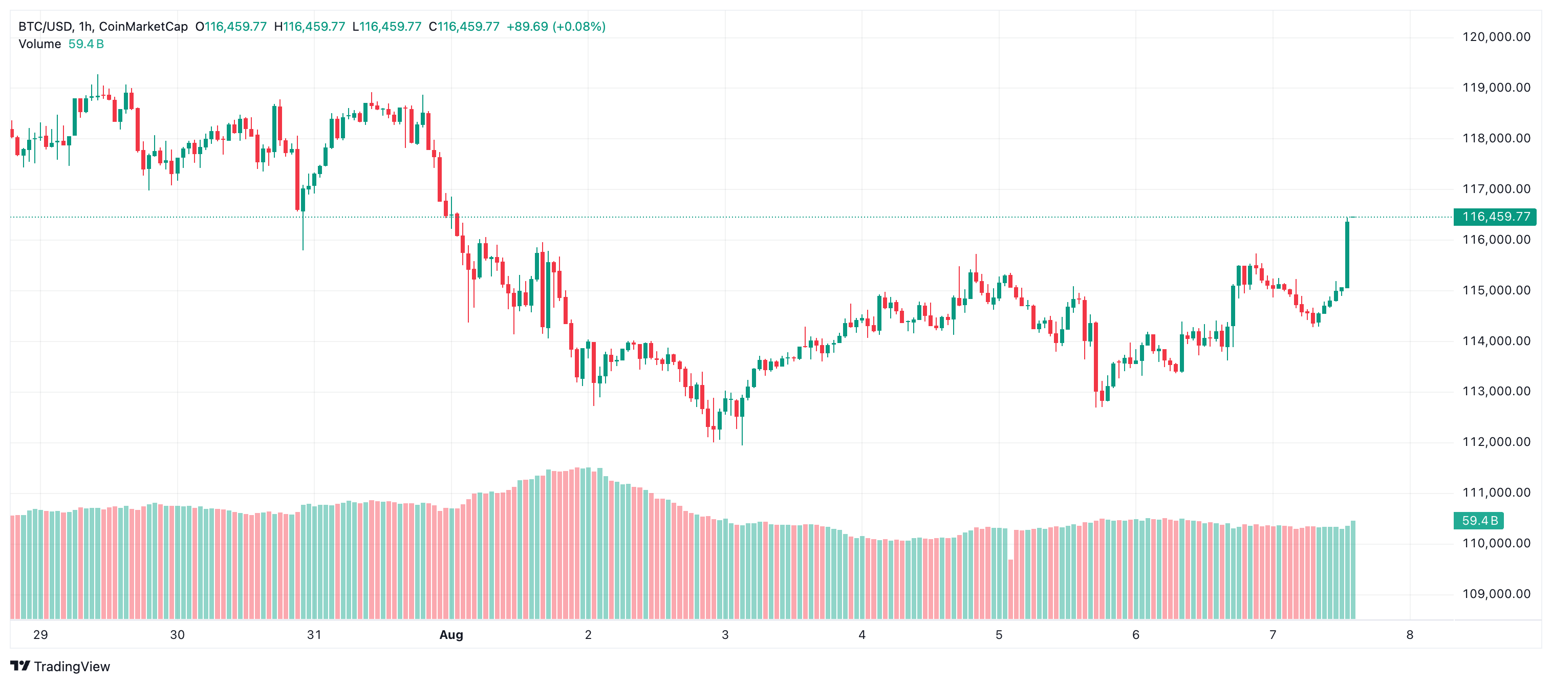 根据CryptoAppsy数据,截至发稿时比特币报116,455美元,24小时上涨2.14%。尽管出现反弹,价格仍受制于116,900美元阻力位。值得关注的是,唐纳德·特朗普今日签署行政命令,允许401(k)退休计划投资私募股权、房地产及加密货币等另类资产。