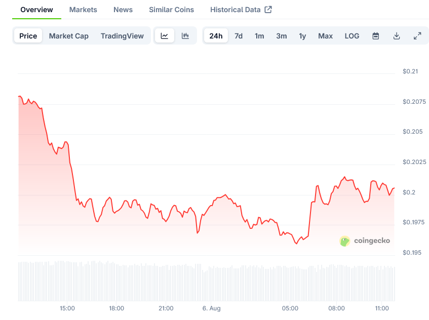 过去两周,狗狗币经历大幅回调,从7月21日创下的五个月高点0.28美元下跌近30%。这只热门迷因加密货币目前正在测试0.19美元的关键支撑位,交易者纷纷猜测这是买入机会还是更深跌势的开始。