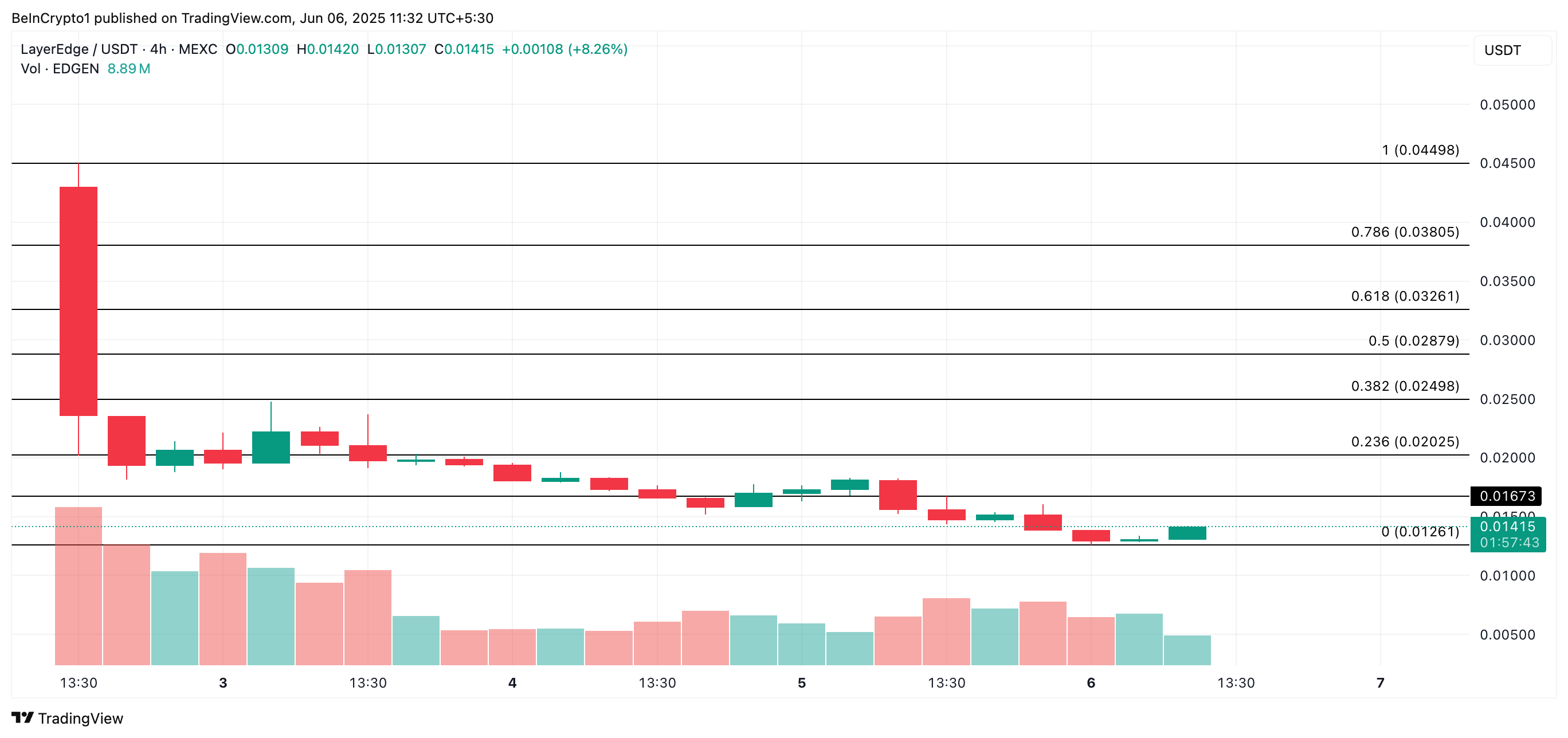 若该趋势延续,EDGEN可能跌至0.012美元。