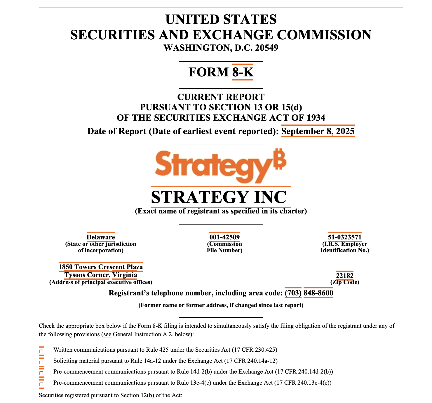 根据提交给美国证券交易委员会的文件显示,专注比特币的企业投资公司战略在9月2日至7日期间购入1,955枚比特币。此次收购的均价为每枚111,196美元,总支出约2.174亿美元。完成这笔交易后,战略公司的比特币总持有量显著增至638,460枚,价值近710亿美元。