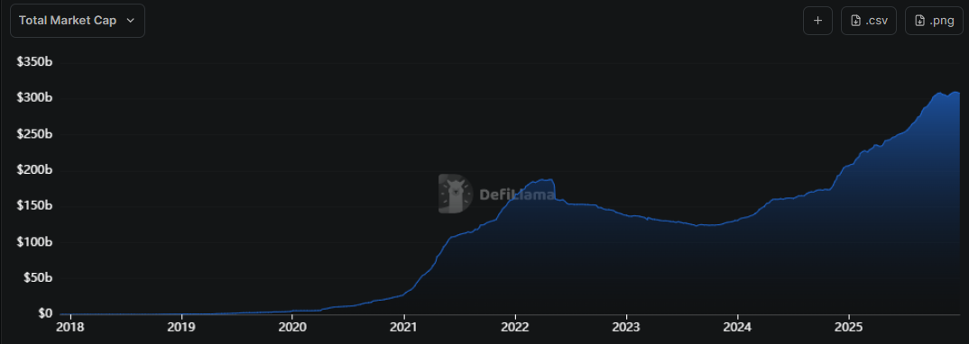 美国、欧洲和亚洲多家金融机构正积极布局稳定币领域,看中其相较于传统金融通道更快捷、低成本的转账优势。据数据聚合平台DefiLlama统计,该领域市值从2025年初的约2050亿美元增长至年末的3070亿美元。