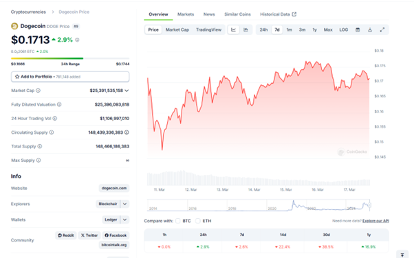 作为首个迷因币的狗狗币(DOGE)仍在不断带来惊喜。当前交易价格为0.17美元,DOGE在动荡的市场中展现出惊人的韧性。