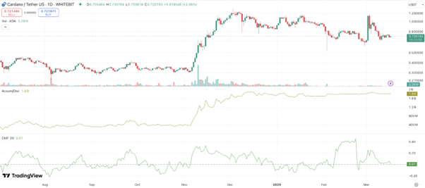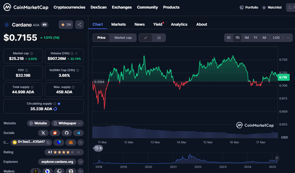 Cardano(ADA)长期以来以其学术卓越和创新的区块链技术而闻名。在美国战略加密货币储备消息发布后,ADA经历了超过60%的飙升,随后回调至目前的0.72美元。