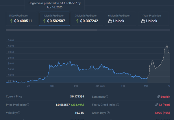 预计未来几天其价格将上涨32.64%至0.233美元,到2025年4月16日可能触及0.58美元的高点。