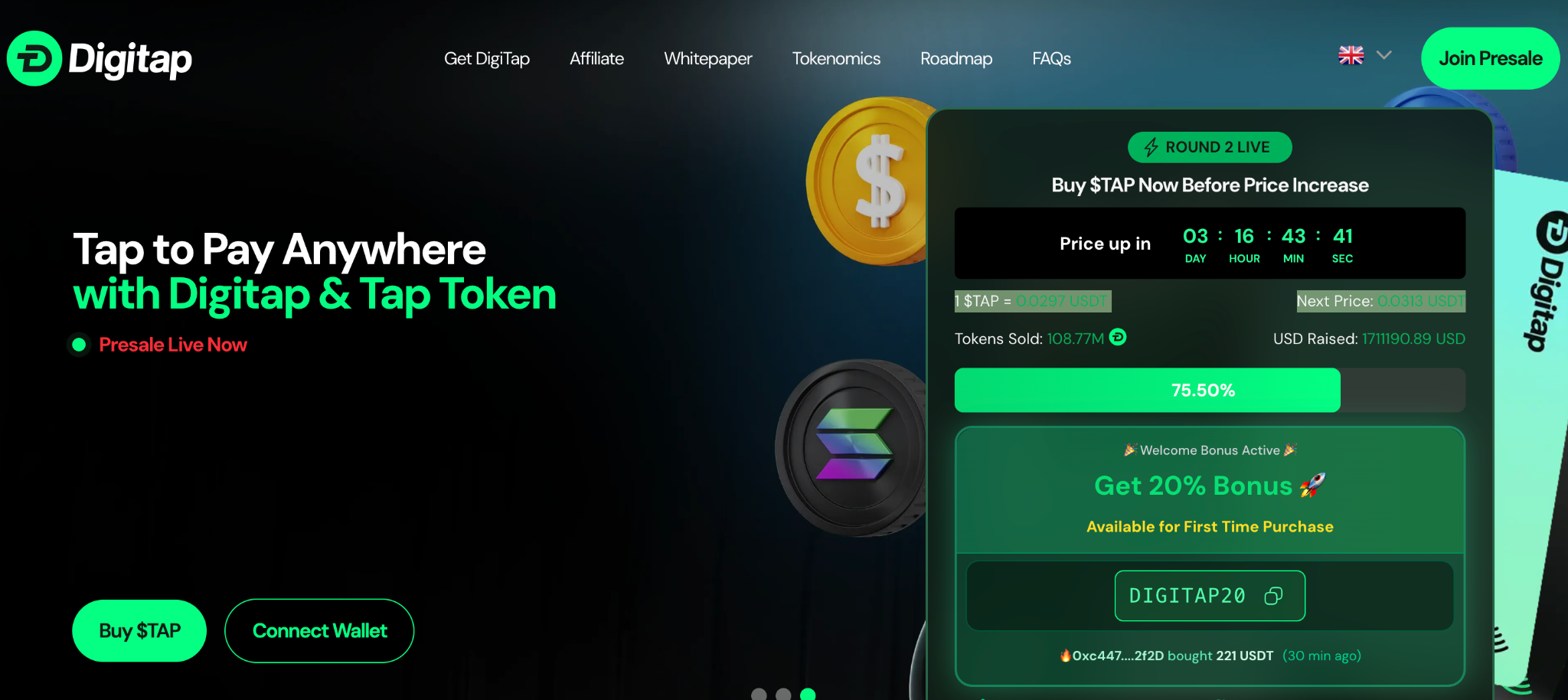 对于正在寻找当下该买什么加密货币的SOL投资者而言,Digitap提供了实用性、稀缺性和采用潜力的罕见组合。其成熟产品、强健代币经济学和早期估值使其独具吸引力。