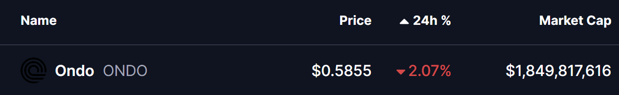 今日加密货币市场基调略有企稳,比特币(BTC)和以太坊(ETH)均呈现温和下跌。这种小幅回调对包括现实世界资产代币Ondo(ONDO)在内的多个山寨币形成了持续压力。