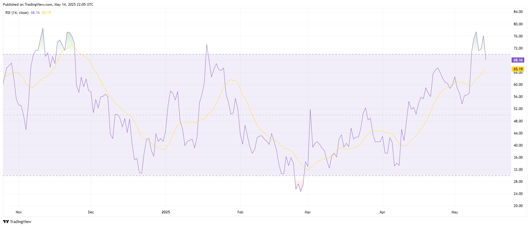来源:SOL/Tradingview尽管如此,相对强弱指数(RSI)仍处于超买区域,表明可能出现短期价格回调。