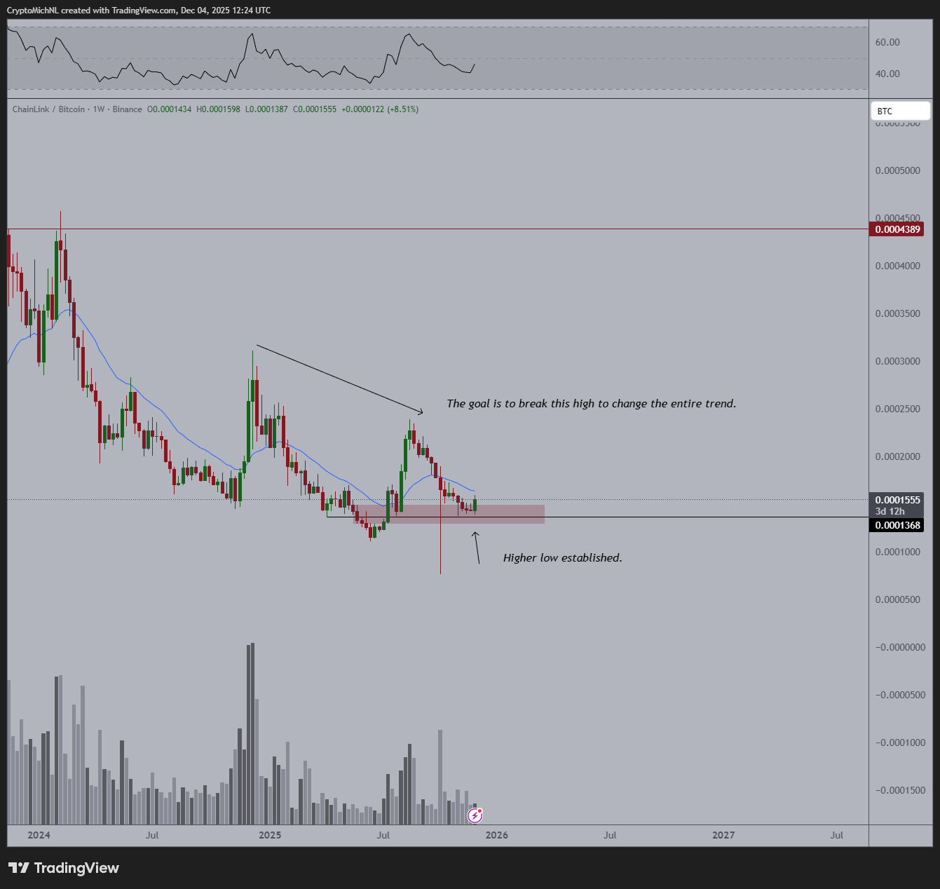 “这对LINK/BTC交易对而言构成了更高低点。这是个积极信号,特别是考虑到其相较于其他协议的韧性与强度。《清晰法案》即将出台,我认为CRE法案的影响力被严重低估。形成更高低点意味着我们可能即将积蓄更强动能。”