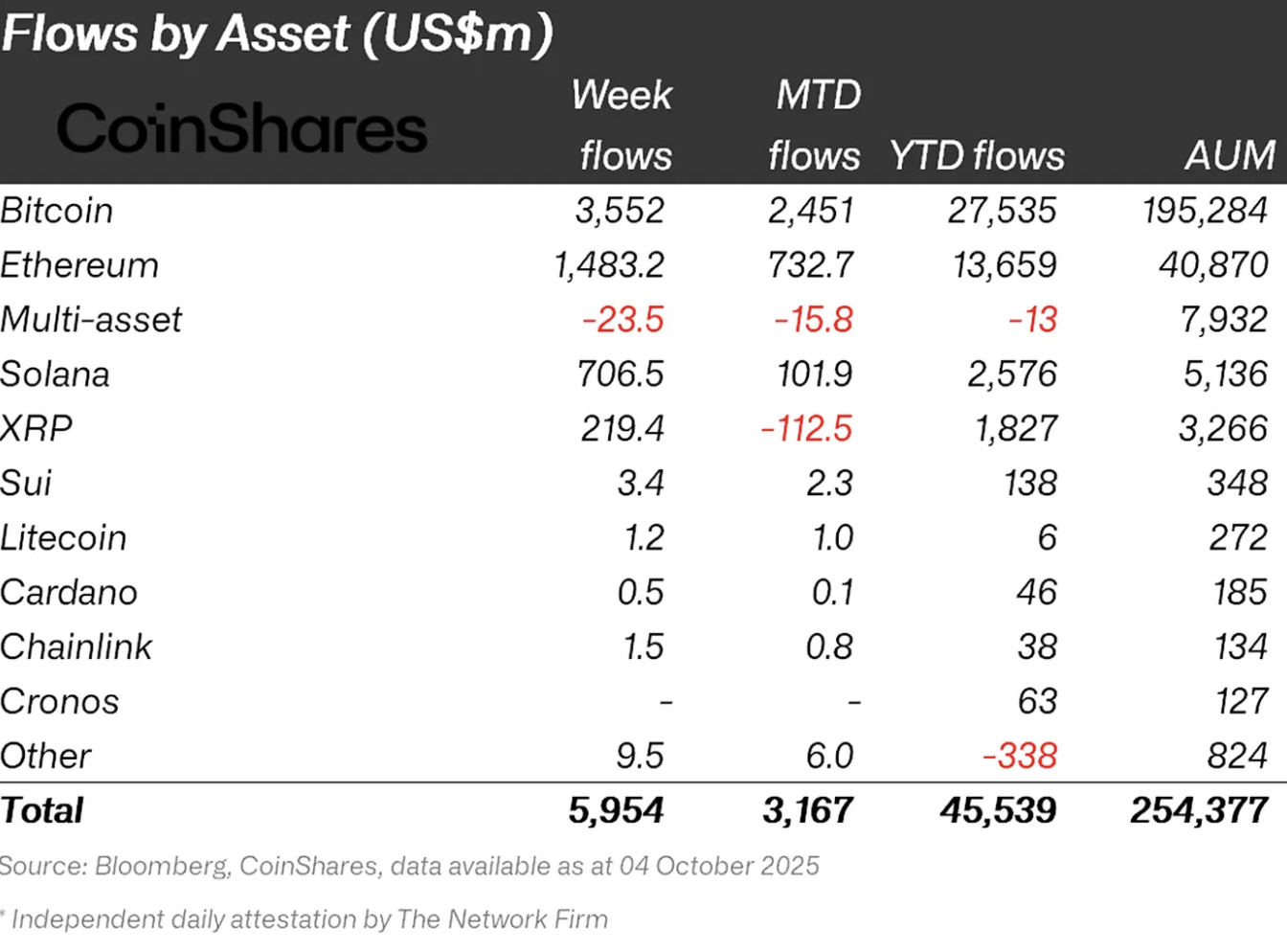 降息后展现的市场信心叠加疲弱就业信号,加速了资金向加密货币投资产品的转移。上周投资者风险偏好明显放松,做空产品未获明显关注。尽管价格飙升,资金流动仍持续强劲,推动管理总资产(AuM)突破历史峰值。