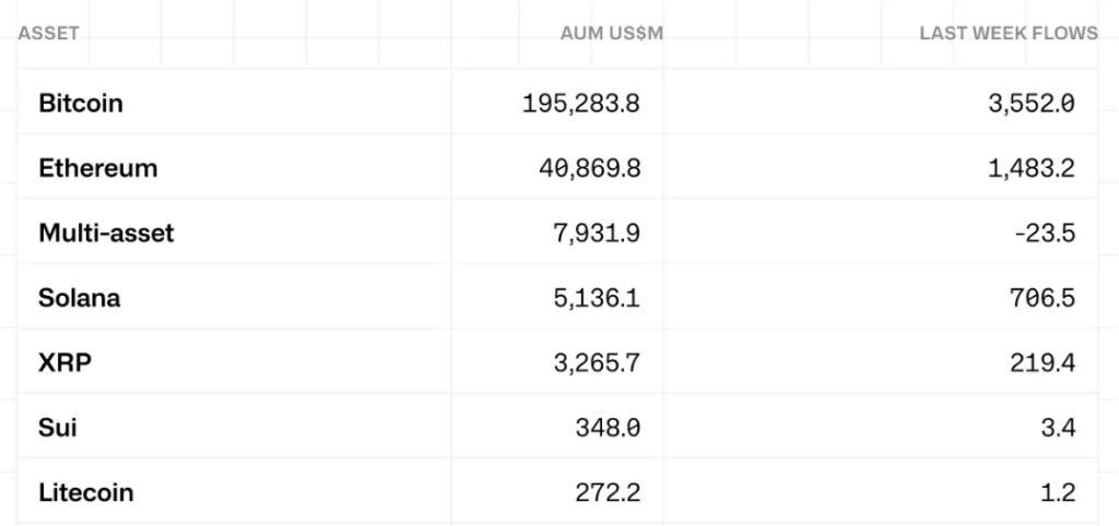 比特币的机构采用正刷新里程碑。现货交易所交易产品(ETF)单周净流入35.5亿美元,推动资产管理规模攀升至1,952亿美元。