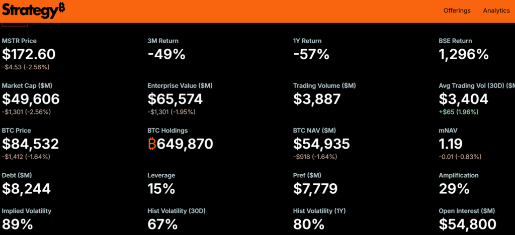 发稿时BTC价格84,532美元,仅较该公司BTC平均收购成本高出约10%。MSTR股价现报170美元,较历史高点下跌约70%。