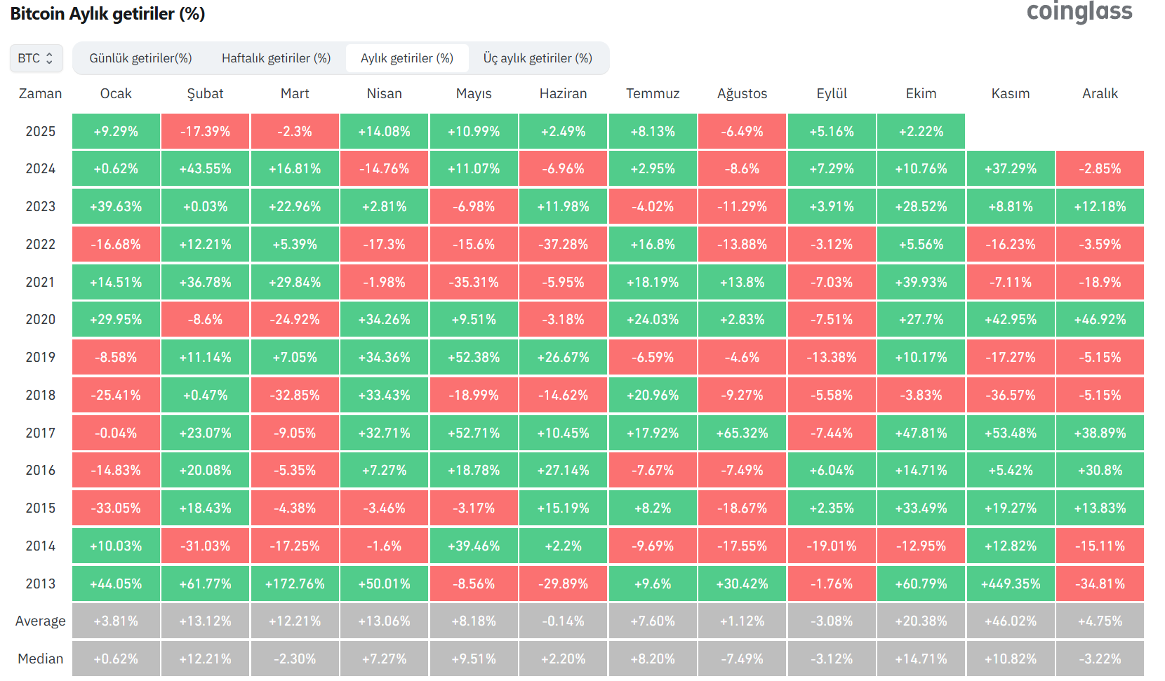 当我们观察比特币的年度和月度表现时,会发现下跌往往集中在某些月份,而上涨也呈现类似规律。