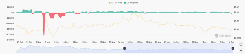 近期Aster呈现缓慢阴跌态势。中性资金费率、压缩的波动性以及持续下移的高点,共同构成了亟待突破的市场结构。现状显示市场正在狭窄转折点等待催化剂。