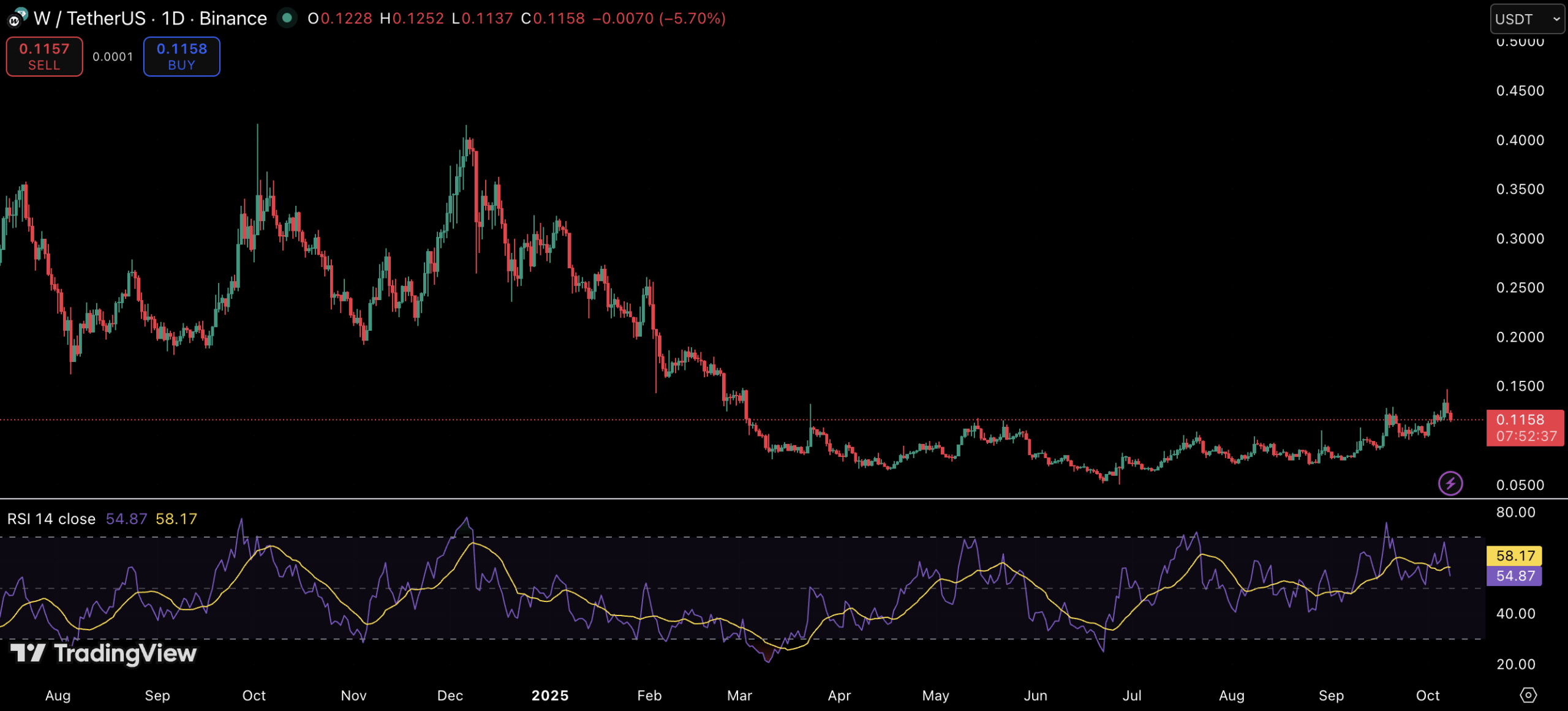 相对强弱指数(RSI)显示中位区间动能良好,在进入超买区域前仍有上行空间。分析师强调"趋势保持完整",流动性区域已完成清理,随着市场信心增强,新买家可能陆续入场。若$W能守住当前支撑位,分析师认为在竞争币整体市场回暖的带动下,新一轮上涨将吸引更多关注并推高交易量。