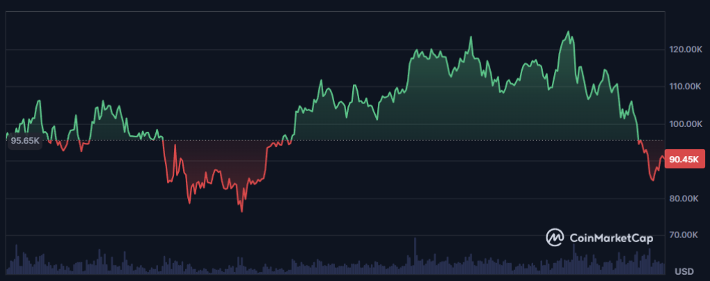 比特币本周初显强势迹象,从86,000-87,000美元区间反弹并重回92,000美元上方。在经历数日猛烈抛售后,买方力量似乎终于开始介入。但随着周末临近,动能逐渐消退:反弹势头停滞,成交量萎缩,BTC最终回落至90,000美元区域——这个水平如今正成为更宏大争论的焦点。