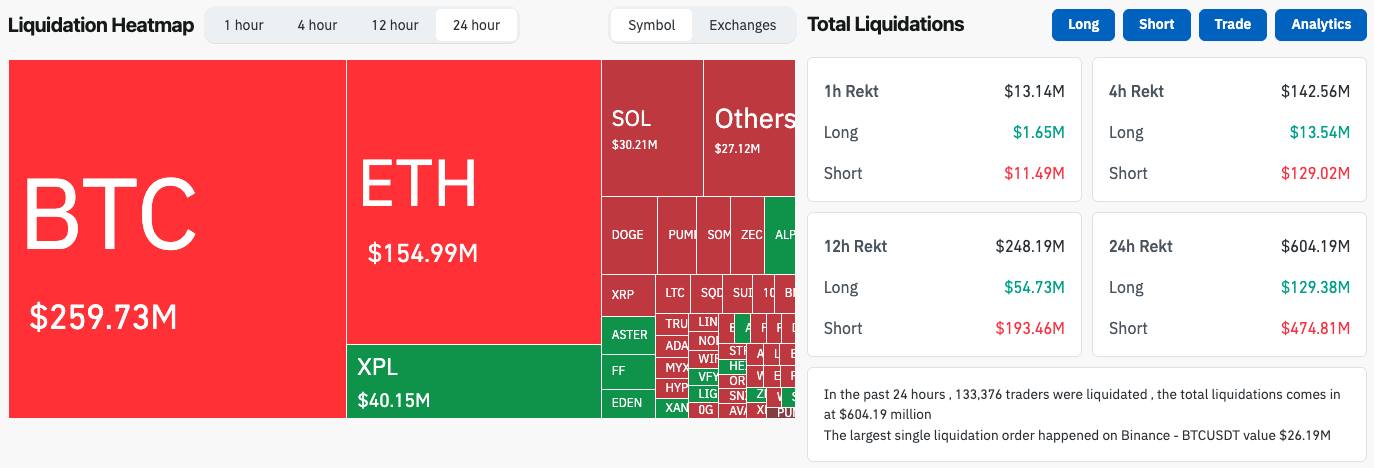 以太坊(ETH)亦暴涨近5%,站稳4300美元上方,SOL重返220美元,加密货币全线飘红,而恐惧与贪婪指数维持在42的中性水平。受整体市场上涨影响,昨日空头仓位遭清算,24小时内约4.75亿美元仓位被平,其中比特币主导2.6亿美元,以太坊1.55亿美元。反观近期热门上架币种XPL和ASTER因价格大幅回调,出现显著多头仓位清算。