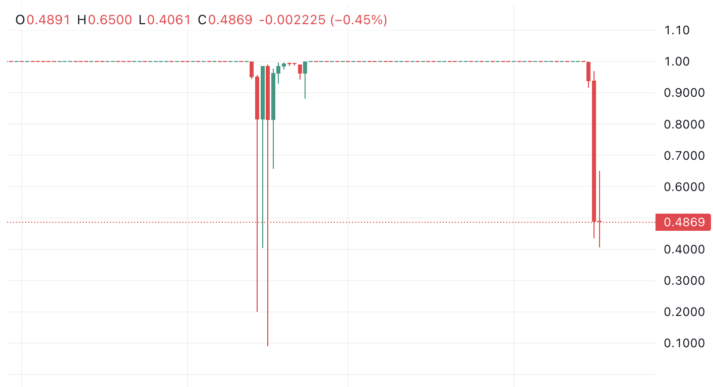 Yala与美元脱钩在去中心化金融领域引发新震荡。价格异动始于凌晨04:15至05:00期间,恐慌性抛售导致投资者信心崩盘,即便短暂回升后仍回落至0.42美元。